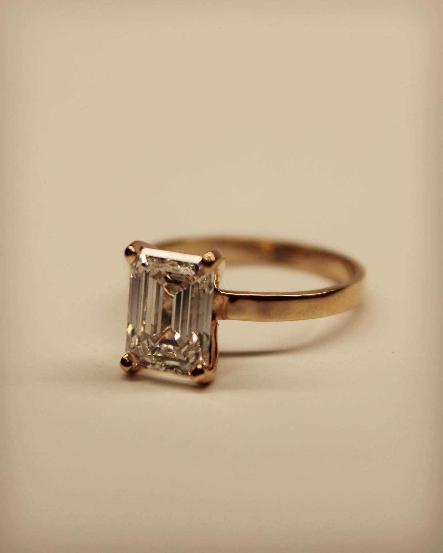 This was one of my biggest Diamonds ive worked with yet. It is a 2.50ct Emerald Cut Lab Diamond set in a 14k Rose gold solitaire setting