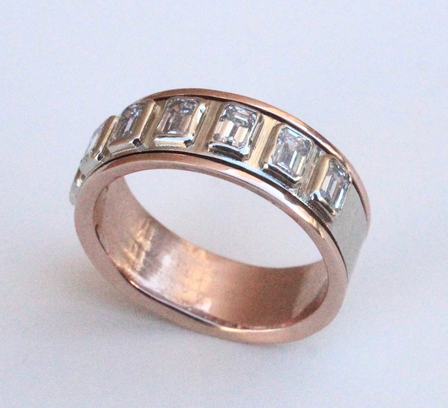 This is one my most unique pieces to date. It features 7 Natural Diamonds in a white gold inlay set in a rose gold band.