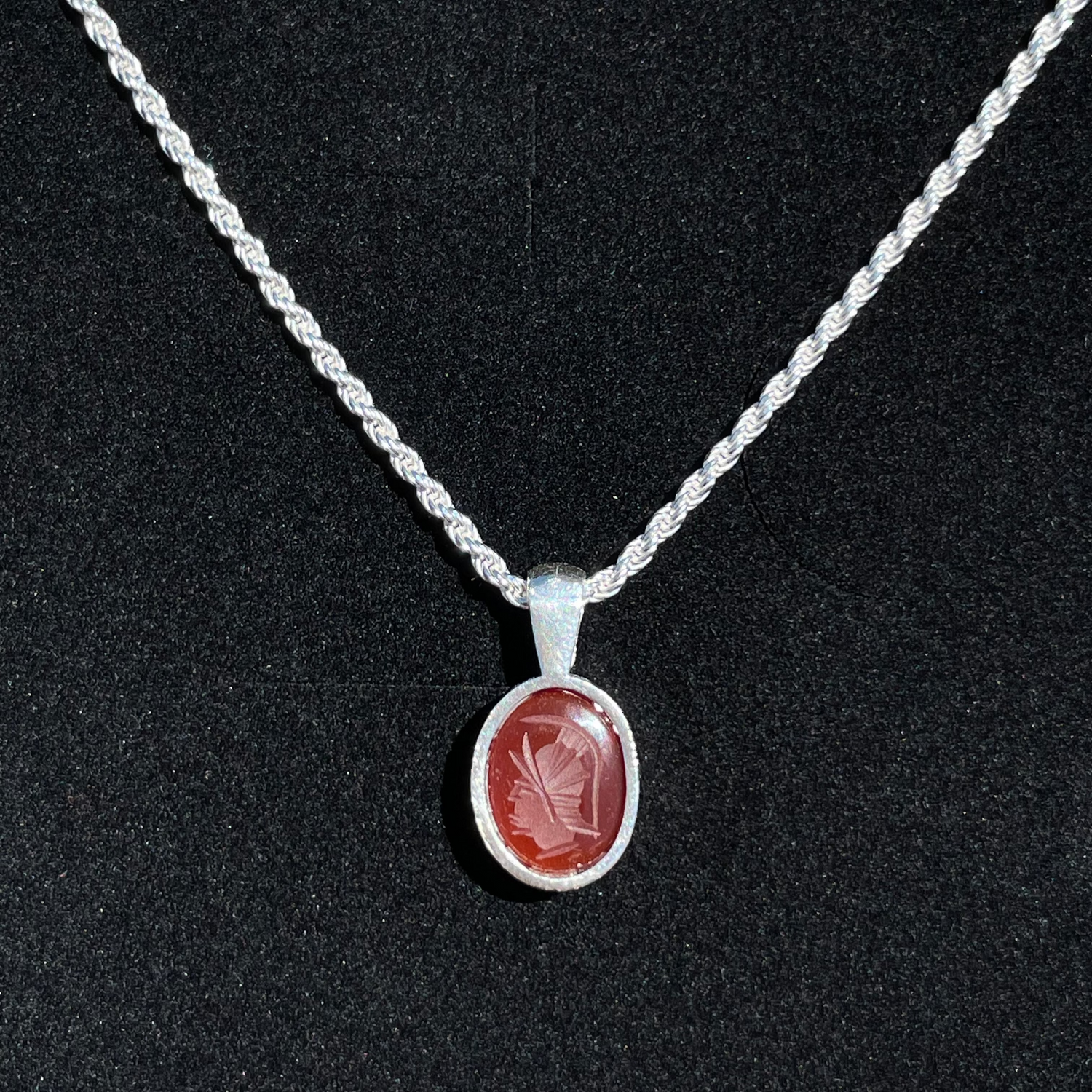 A nice carved Roman soldier Carnelian pendant set in Sterling Silver