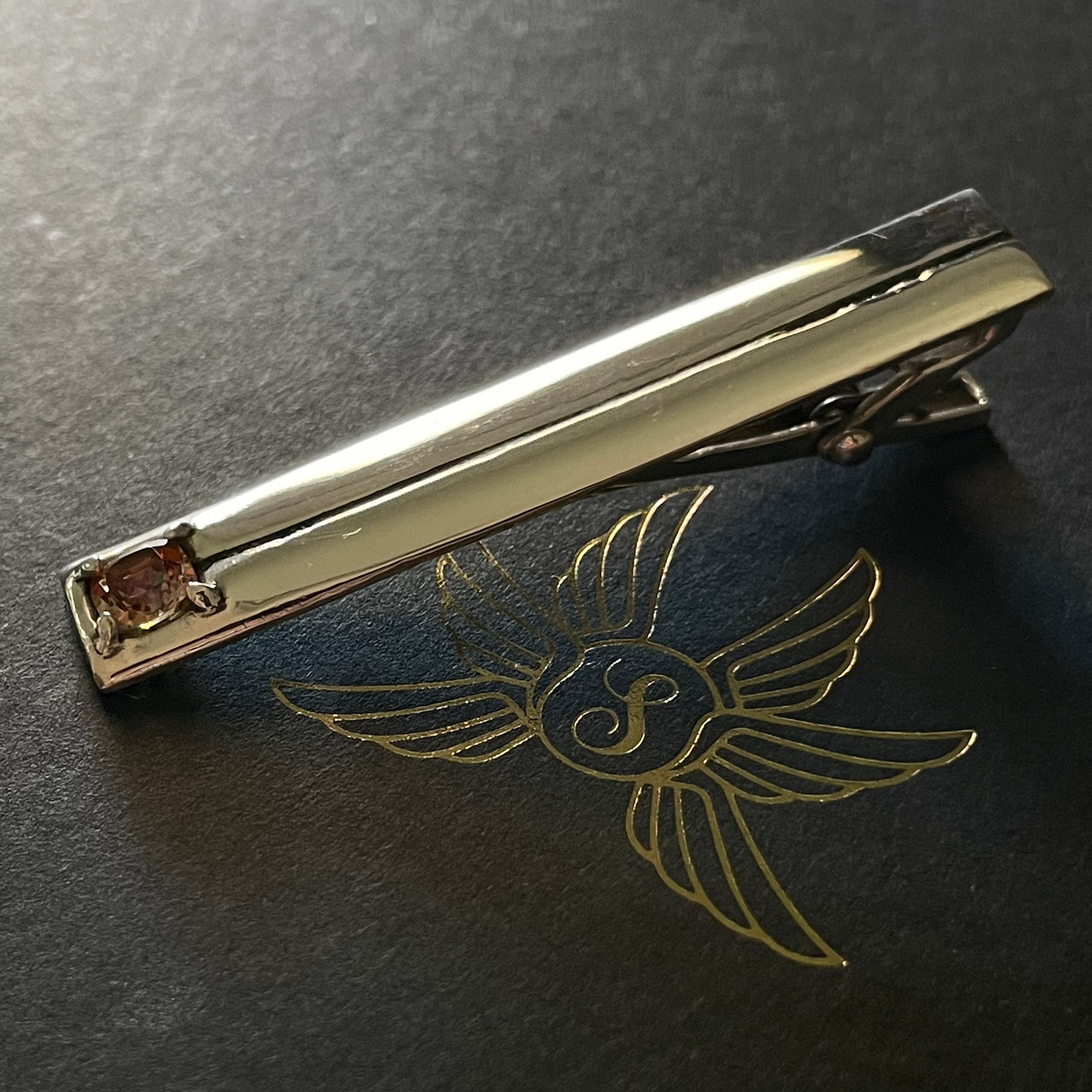 One of my most interesting pieces to date. It is a sterling silver tie clip set with a citrine.