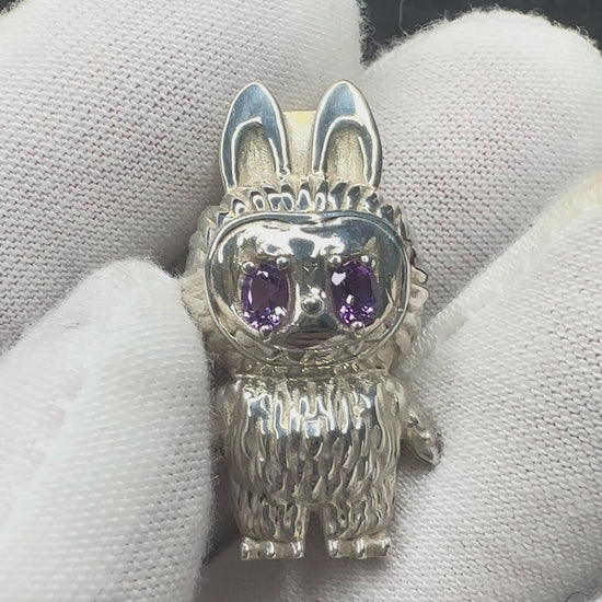 Sterling Silver Labubu Pendant with Amethyst Eyes